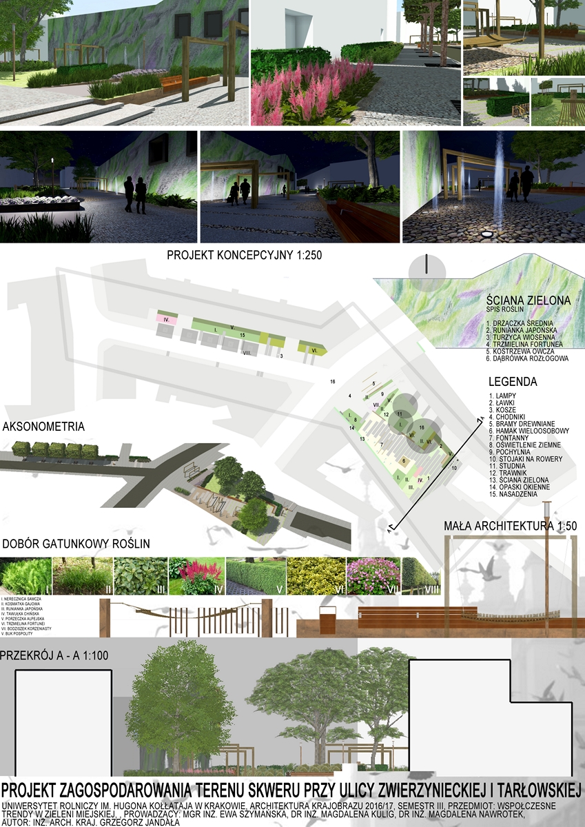 Projekt zagospodarowania terenu skweru przy ulicy Zwierzynieckiej i Tarłowskiej w Krakowie, dzielnica Stare miasto.